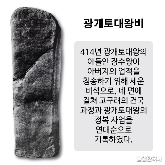 또한 광개토대왕이 정복을 한 땅은 광개토대왕릉비(광개토대왕이 박은 것이 아니라 장수왕이 414년에 "우리 아빠 최고!" 이러면서 세움)가 박혀 있어.