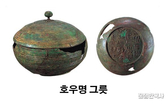바닥에는 '을묘년국강상광개토지호태왕호우십'이라는 글자를 새겨져 있어 광개토대왕의 위엄을 볼 수 있어.