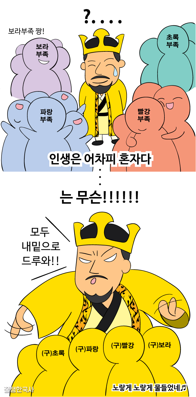 이때부터 다른 부족에서는 왕을 할 수 없었고, 계루부 고씨만이 왕이 되었지.(왕족 계루부를 중심으로 지배자공동체인 5부체제가 확실히 자리잡음)