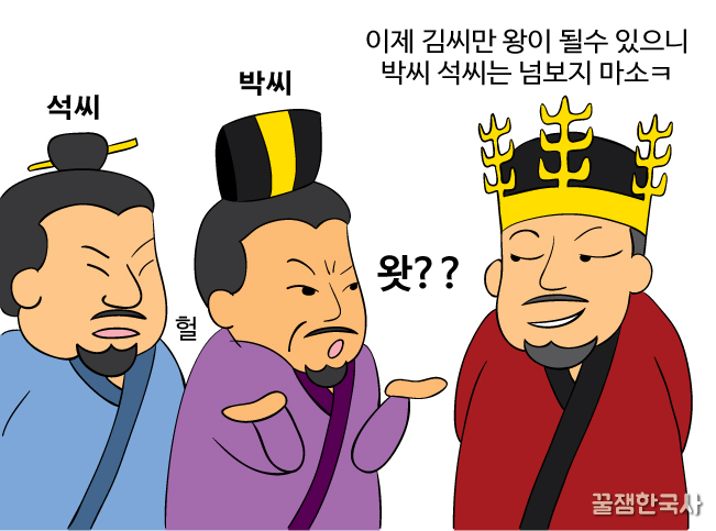 이런 어정쩡한 우두머리 위치에서 내물마립간은 석씨와 박씨를 눌러버리고, 앞으로 계속 김씨만이 왕이 될 수 있도록 기반을 다져.