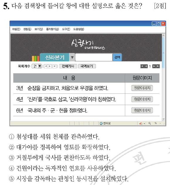 5번 : 지증왕은 동시전을 설치하였지. 정답!