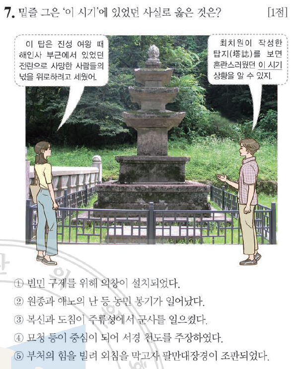 5번. 최치원은 신라 하대에 활동한 6두품이지.