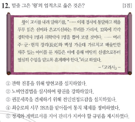 게다가 성종은 지방 12목에 경학·의학박사를 파견<★★>하는 등 유교정치이념을 도입한단다.
