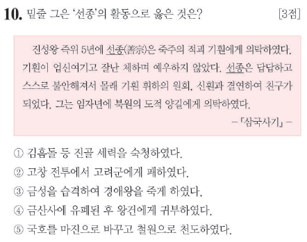 5번. 국호 마진, 철원 천도는 궁예! 정답.