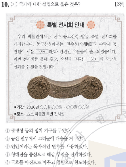 1. 궁예는 철원으로 도읍을 옮겨 904년에 국호를 마진, 연호를 무태라 했다.