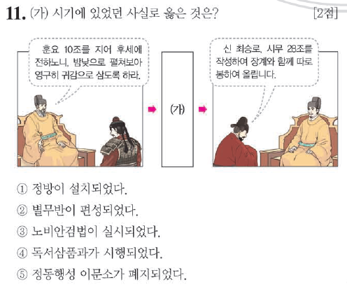7. 성종은 공복을 제정하고, 2성 6부 체제를 마련했다.