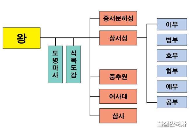 중앙 행정조직은 2성 6부야. 성종 때 갖추어졌지.