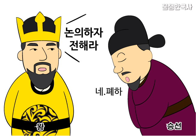 왕 : 그런가? 아니야... 한번 대신들 모여서 논의하라고 전해.