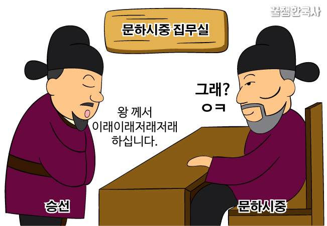 승선 : 뭔 그런 장난을; 저번에 전하께 불경스런 언행 하시다가 어사대가 태클 걸지 않았소?