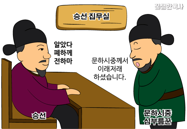 (이렇게 왕에게 보고가 들어갈 때는 원칙적으로 우선 승선을 거쳐야 했어. 문고리 권력 쩔지?)