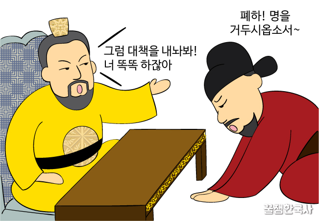 왕 : 재정부담이 만만치 않은데? 어쩌겠냐. 백성이 우선이지. 상서성의 병조판서에게 이대로 집행하라고 해라.