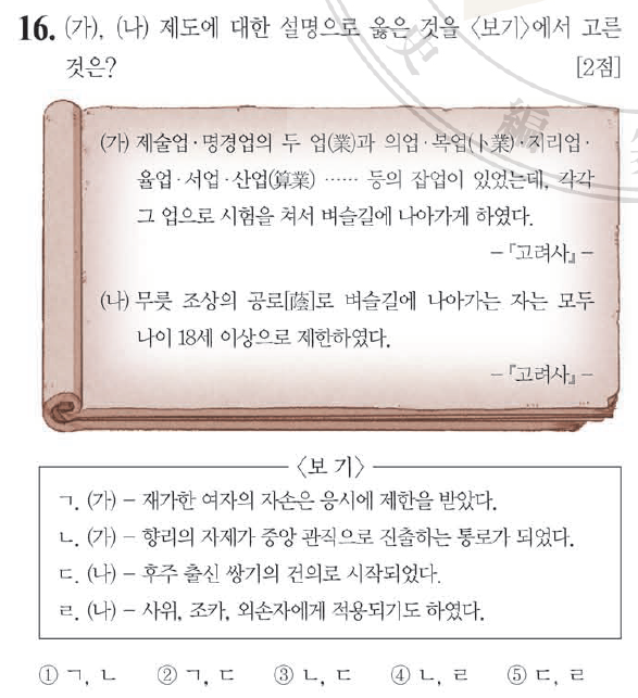ㄹ : 음서제는 사위, 조카, 외손자에게도 광범위하게 적용됐지. 정답!