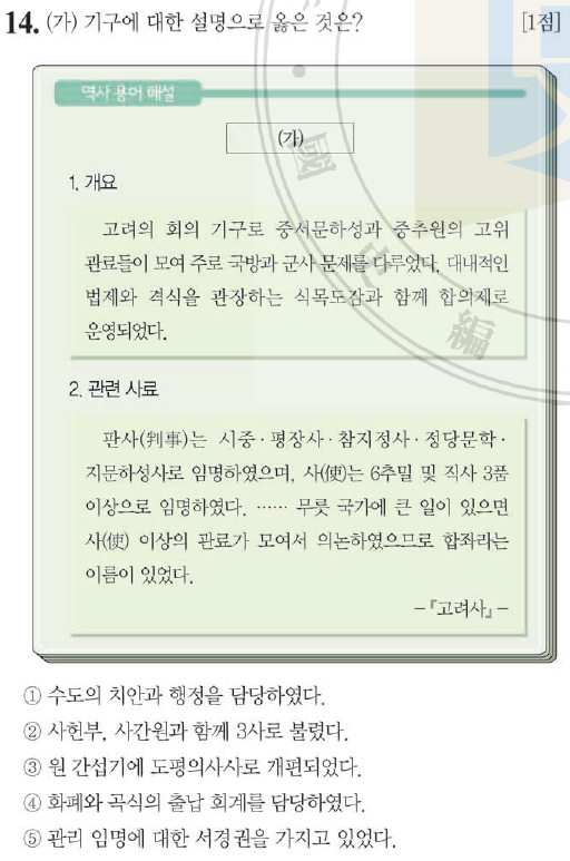 즉 2품 이상의 높은 관리들끼리의 회의기구지. 중서문하성과 중추원의 신하들끼리 모인 실질적인 최고 회의야.