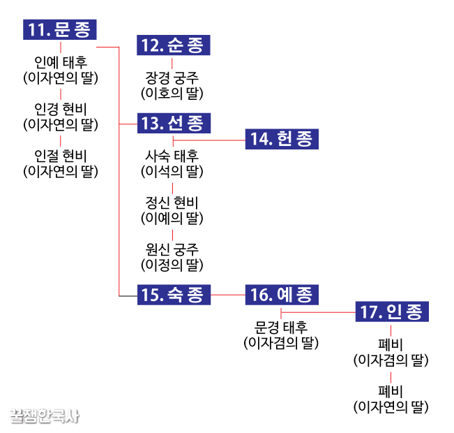 7명의 왕을! 무려 80여년동안 외척을 해먹은 집안이지. 죄다 집안 딸들을 왕실과 혼인을 시킨 게야.