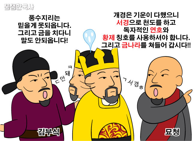아무튼 그 둘이 불 튀기듯 주장을 관철하다가 결국에는 개경파의 승리로 끝나고 서경천도운동은 좌절돼.