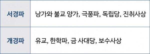 ● 서경파 : 묘청. 정지상. 금정벌. 고구려 계승. 낭가와 불교 양가. 풍수지리. 극풍파. 독립당. 진취사상.