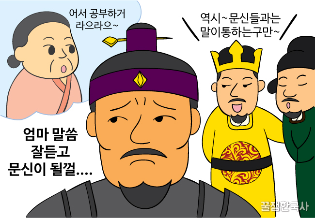 과거에 무과도 없었고, 승진에 제한도 있었으며, 군사 최고 지휘권도 문신이 갖고 있었지.