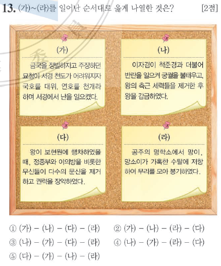 이자겸의 난 -> 서경천도운동 -> 무신정변 -> 망이 망소이 난이지.
