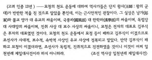 아래처럼 훗날에 신채호가 서경천도운동을 천년래제일대사건이라 평가했어.