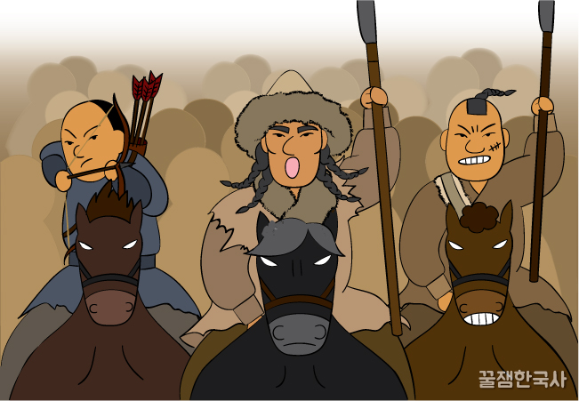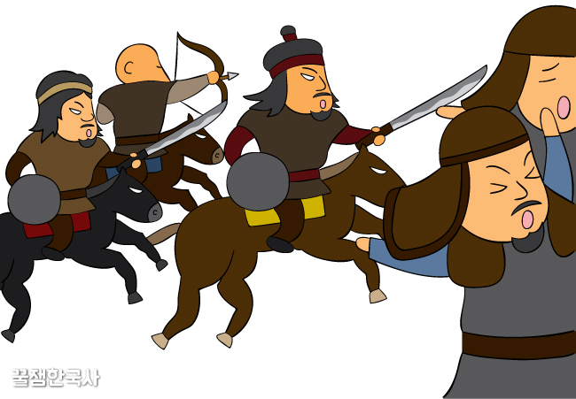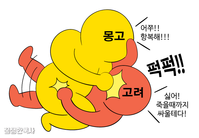 그리고 몽고 놈들이 역시 우리 고려도 가만히 두질 않고 쳐들어오지.