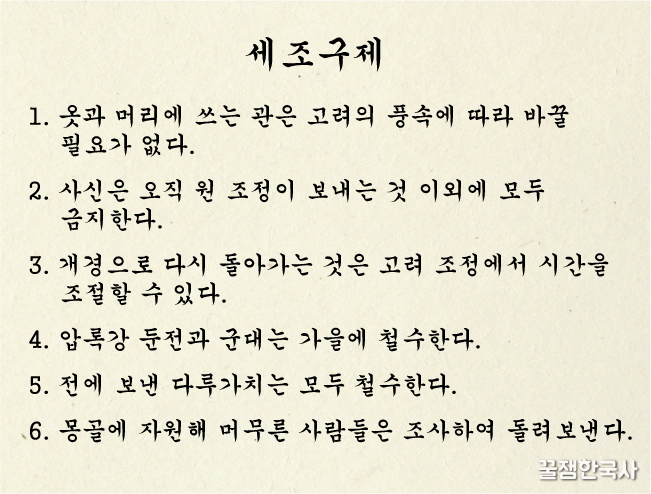하지만 고려 조정은 전쟁이 오래되면 피해가 걷잡을 수 없이 커질 것을 염려하여 항복을 해버려.