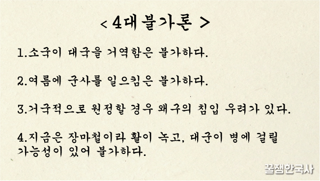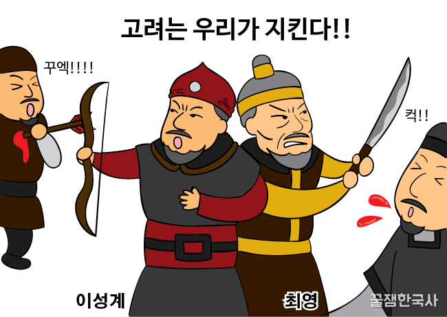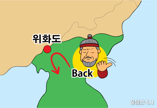 그러나 최영 장군 대신 출전했던 이성계 장군이 4대불가론을 주장하면서 위화도에서 회군을 한단다.<★>