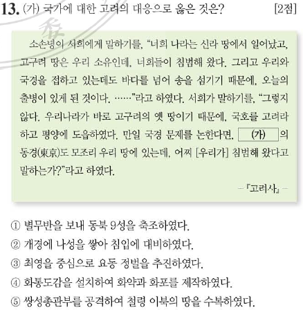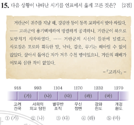 5번 : 삼별초는 거란과 관계가 없죠. 무신집권기 최우가 설치했고, 몽골놈들과 관련이 있지.
