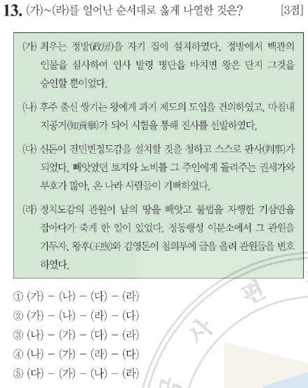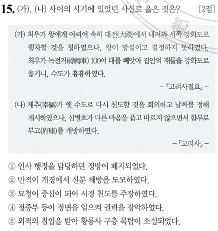 3번. 묘청의 서경천도운동은 (가)보다 전.