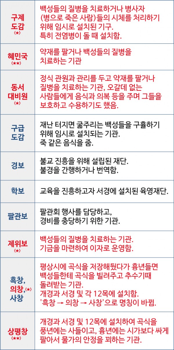 8. 혜민국에서는 약재를 팔거나 백성들의 질병을 치료하였다.