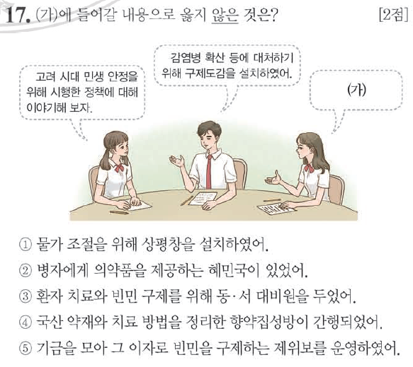 고려의 민생 정책이 아닌 것을 고르라고 대놓고 알려주네.