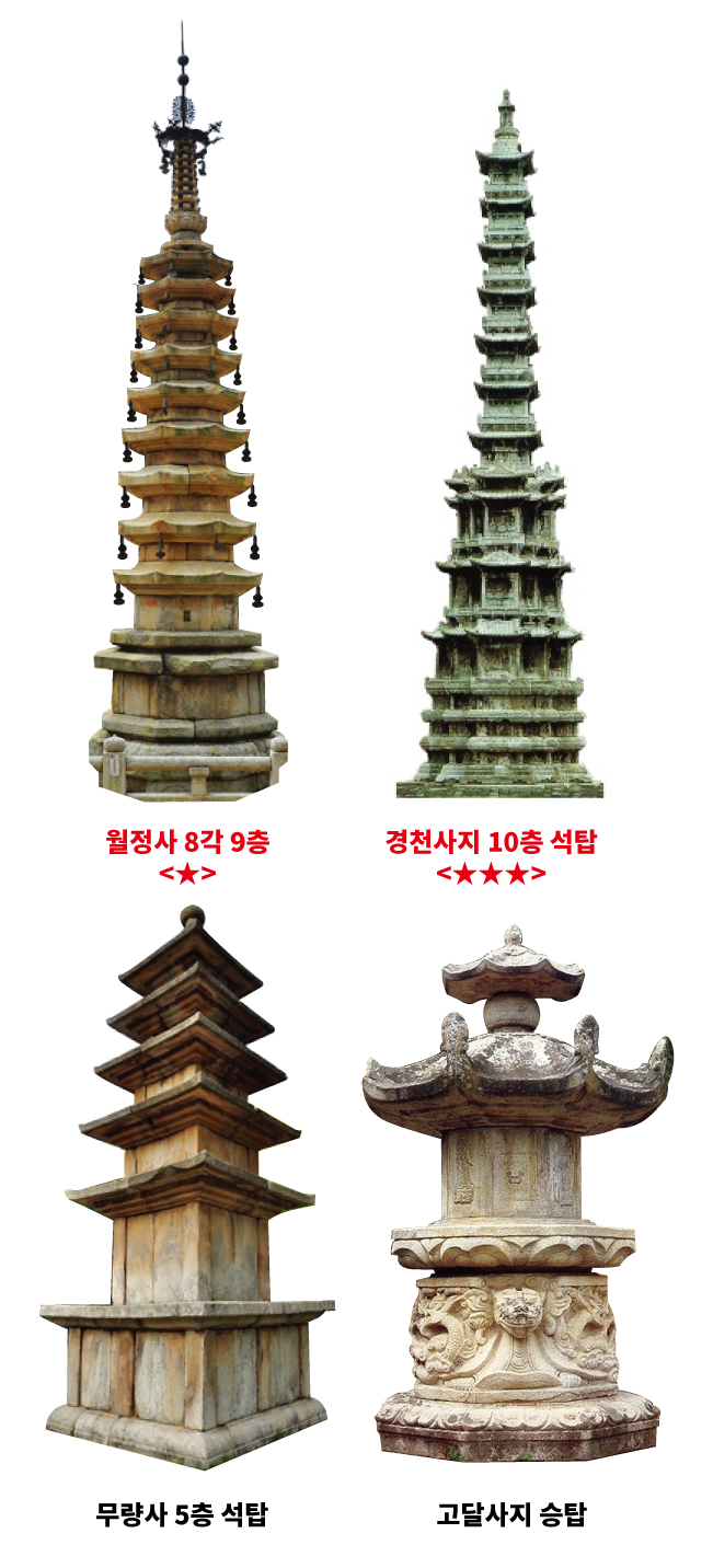 전기 - 무량사5층 석탑. 월정사 8각9층 석탑. 불일사 5층석탑. 현화사 7층 석탑. 고달사지 승탑