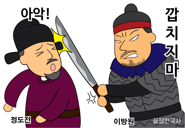 이런 상황에서 정도전이 앞으로 조선은 재상중심의 정치니 뭐니 하면서 왕권을 약화시키겠다는 소리를 들으면 빡이 도는 게 당연한 거 아니겠어?