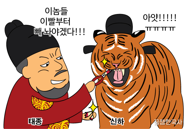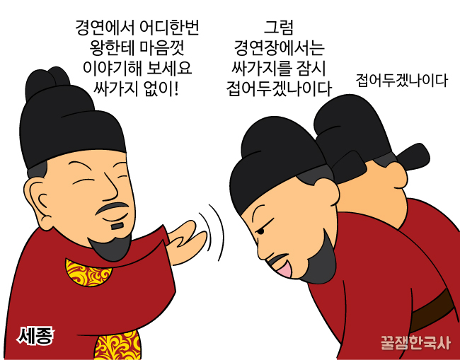 태종 덕분에 이제 왕권이 안정화 되었으니 이제 신권과 조화를 추구한 것이야.