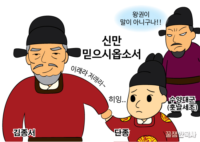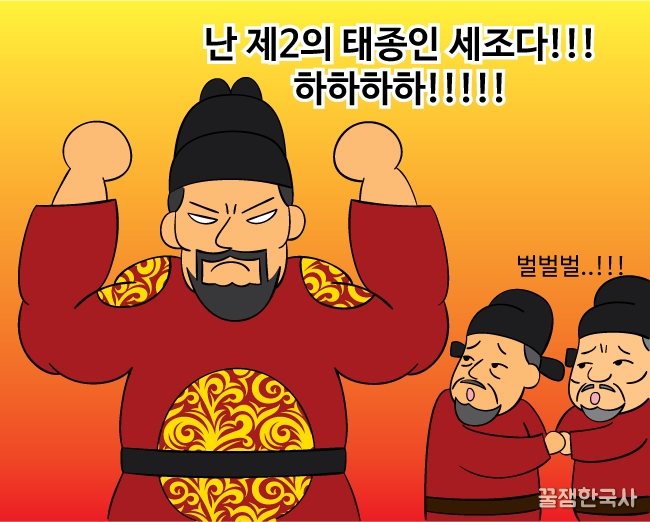 어찌됐든 어린 단종 때문에 왕권이 바닥에 있는 시점에서 한명회, 권람 등의 측근들과 함께 계유정난(1453)<★★★>을 일으켜 김종서를 죽이고 단종을 폐위시켜 왕이 된 자가 있었으니...