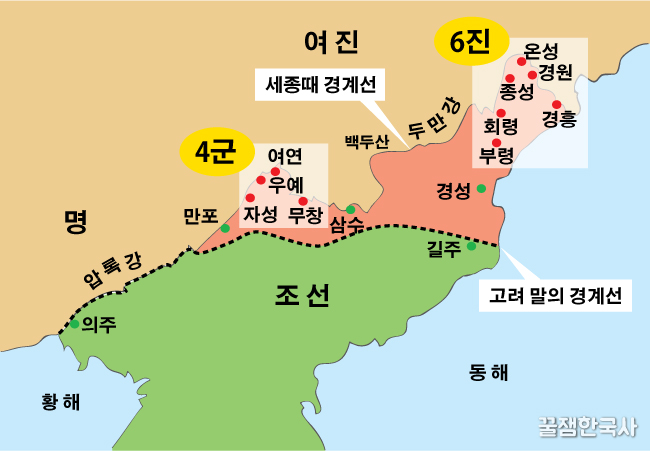 이제 4군 6진이 완전히 우리 땅이 된 거야. 하지만 여진족이 언제 또 쳐들어올지 모르잖아.