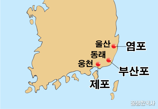 불쌍하기도 하고, 또 다른 문제가 터질까 염려되어 세종 때 부산포·제포·염포, 즉 3포를 개방하고(1426), 계해약조를 맺어줘.(1443)<★★★★★★★>