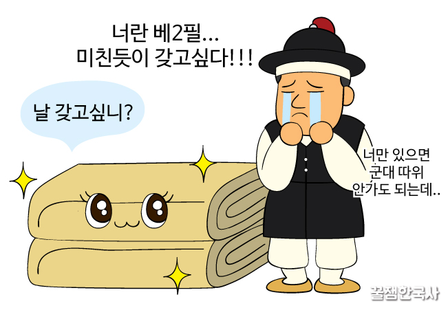 이러다보니 중종 때 국가에서 차라리 그냥 1년에 2필을 내면 면제해주는 군적수포제를 실시해.
