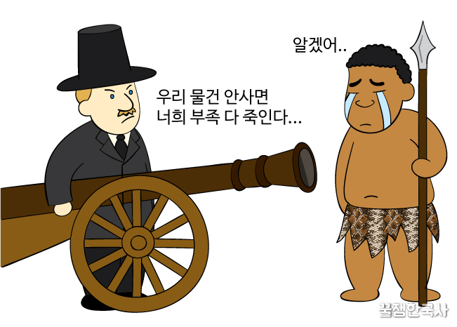 아니지... 발전된 무기로 줘 팬 다음에 결국 강제로 개항을 시켜.