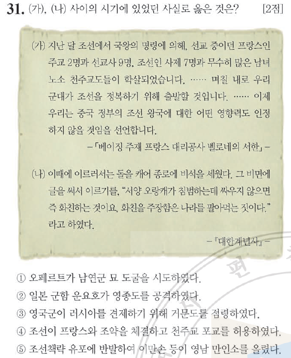 1번 : 오페르트 도굴사건은 1868년. 정답!