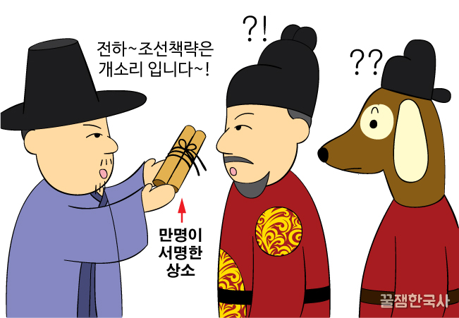 이만손을 중심으로 하여 조선책략 내용을 맹렬히 비판하는 거야.