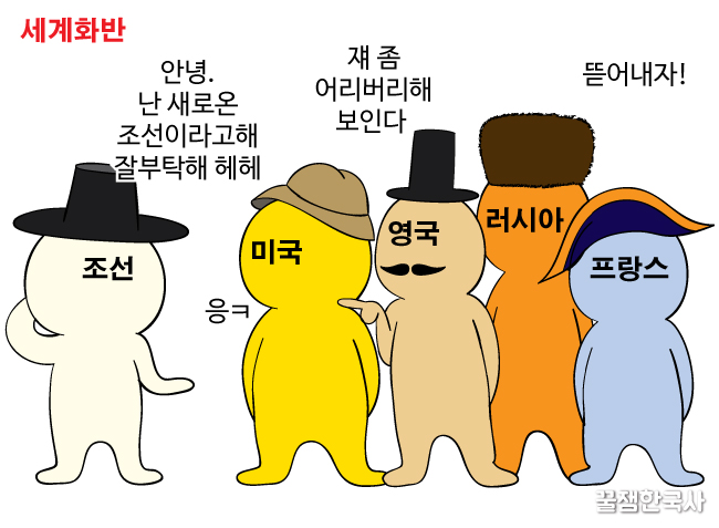 고종 역시 이에 동의하였고 결국 미국과 조미수호통상조약을 준비하게 되지.