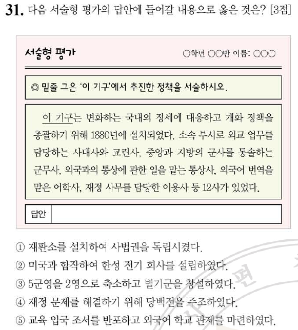 훗날 갑오개혁 때의 군국기무처와 반드시 구별해서 암기해야 함.