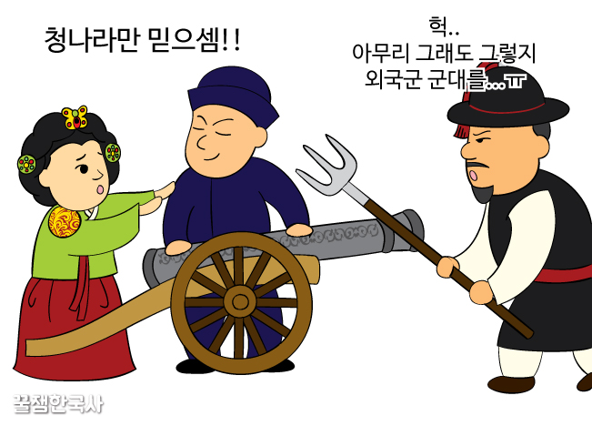 청나라에 도움을 요청해서 외국군대를 끌어들인단다;