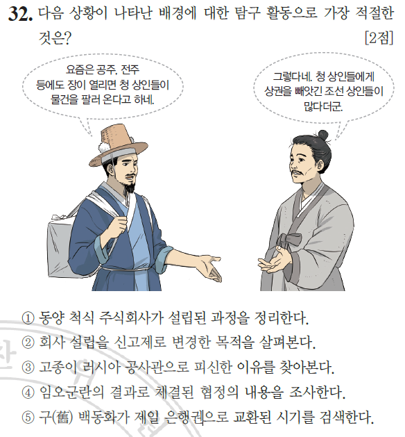 4번 : 임오군란 후 조청상민수륙무역장정이 체결되었지. 정답!