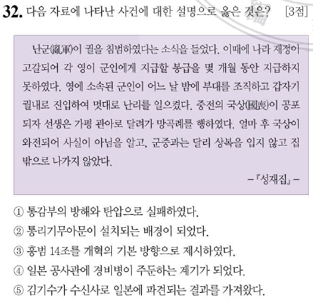 암튼 구식군대들은 선혜청으로 가서 자신들에게 불량미를 내준 책임자를 뚜드러 패버리지.