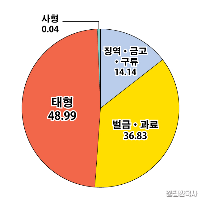 (2) 태형 : 태형에 대한 조항이 있었어. 1912년부터 1920년까지 존속했지. 3개월 이하의 징역 또는 구류에 처하여야 할 자를 태형에 처할 수 있다고 규정했단다. 어처구니없는 것은 조선인에게만 한해서 적용;<★★★★★★★>