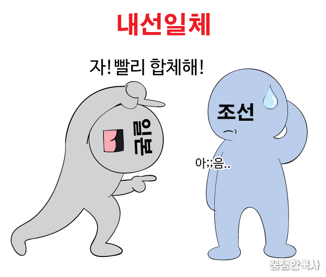 내선일체(일본과 조선은 하나다!)를 강요하면서 황국신민화(일본 왕에게 충성하는 신하와 백성)정책을 펼쳤지.
