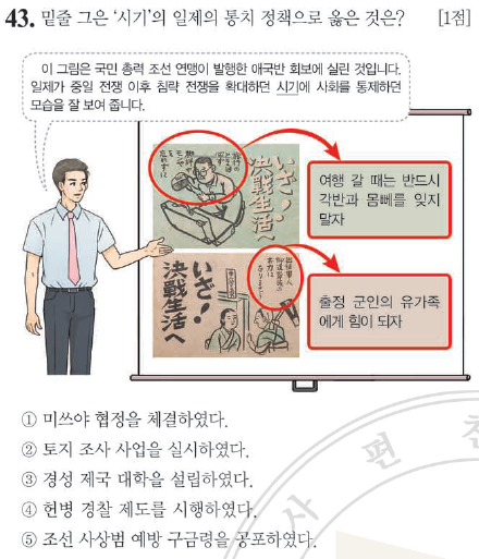 1번. 경성제국대학은 문화통치 시기에 설립됐지.