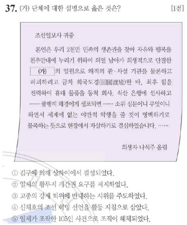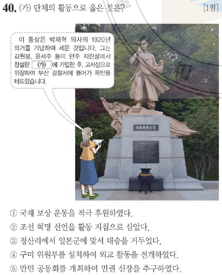 4번 : 신채호의 조선혁명선언을 활동 지침 ㅇㅋ. 정답!