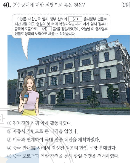임시정부 산하, 충칭 등을 통해 (가)는 한국광복군이야.